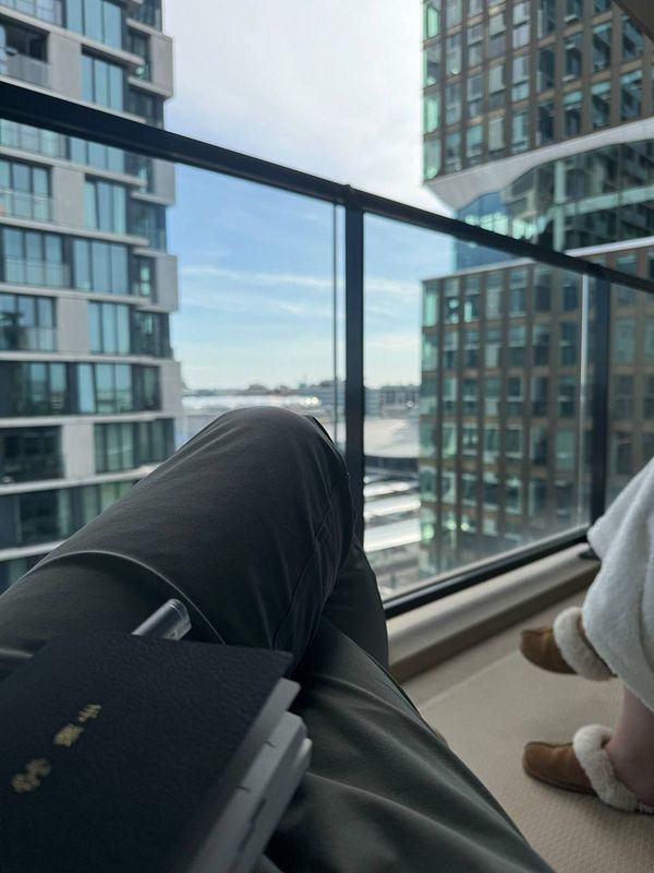 Journal & absorb Vitamin D & roasted beans on balcony with gf