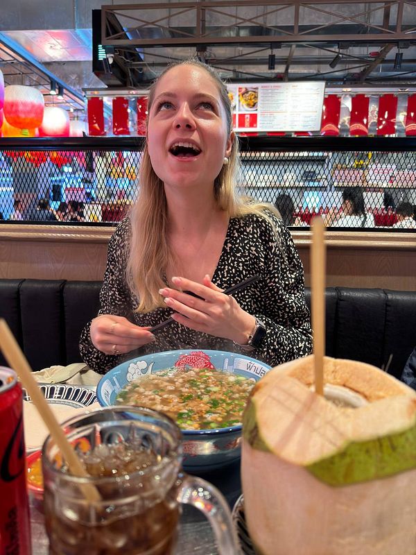 Wake up gf with spicy Thai rice soup in new BKK mall