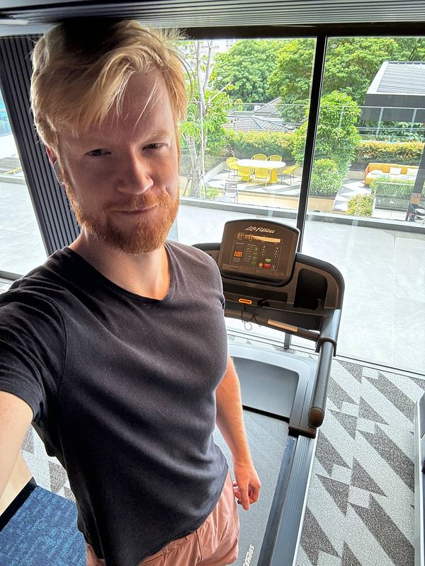 Run into Rippling (>$350M ARR) tech billionaire at hotel gym because he warns me to watch my head on treadmill & end up working out together