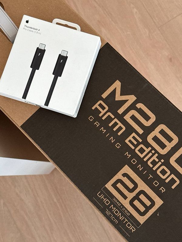 Get thunderbolt 4 cable & new monitor for single cable to macbook setup