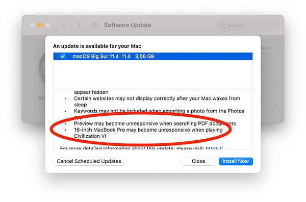 Update mac OS and find out Apple is actively fixing issues with (very) specific game(s)