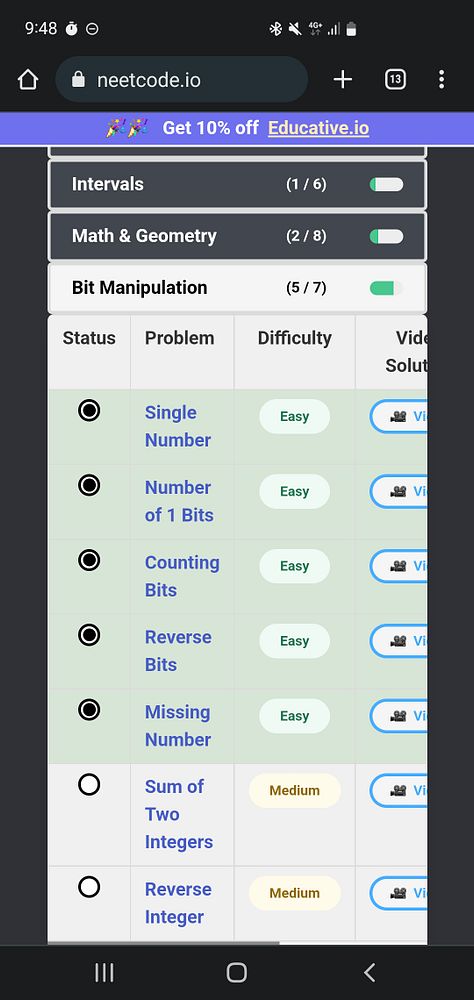 Finished watching neetcode's videos on the "easy" leetcode problems.