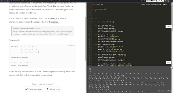 Spent time practicing an InterviewCake question ("Reverse Words").