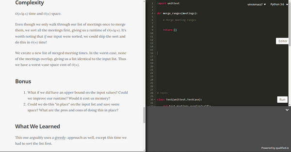 Studied InterviewCake for an hour ("Merging Meeting Times").