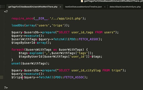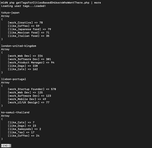 start writing script getTagsForCitiesBasedOnUsersWhoWentThere.php that uses user’s self-describing profile tags to see which cities they went and find tags that disproportionally occur more to generate tags for cities (like vegans going to a certain city might make the city vegan)