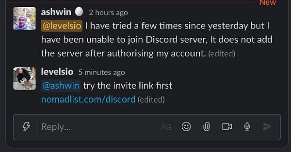 add discord_joined_server=1 BOOLEAN so that user gets redirected to invite link first, then joins server, then connects slack, then clicks ✅, then it saves discord_joined_server=1, then the next time it goes to Discord link it redirects them straight to the server. This is to avoid users first connecting Discord without ever joining the Discord (?)