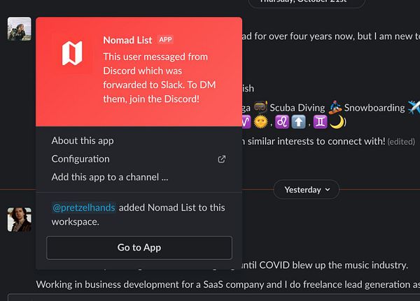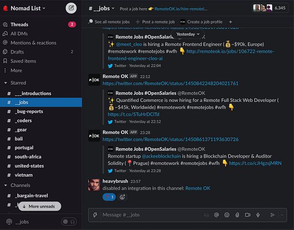 see random new guy sign up and disable #nomads Remote OK jobs feed integration because Slack doesn’t give a F about permissions or roles unlike the supreme God that is Discord, P.S. Fuck Slack