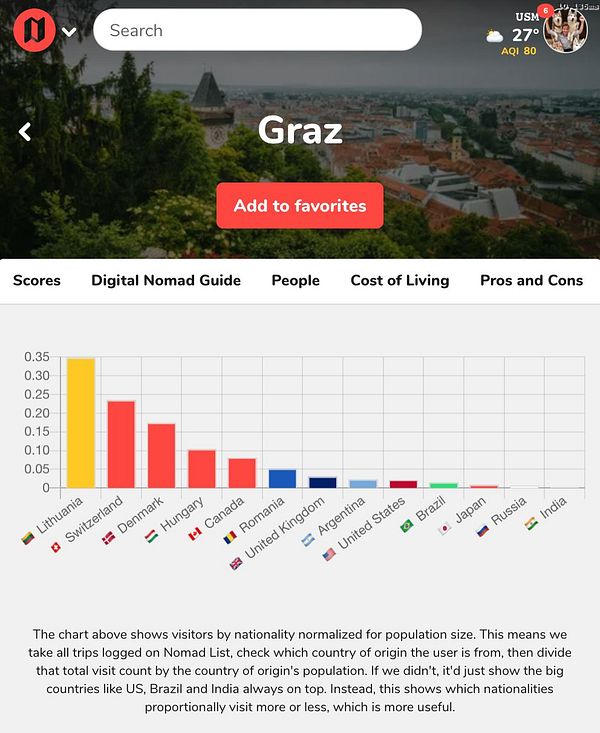 add user’s country on sign up to calculate visits to city by country of origin in data so I can make pie chart on /trends page because someone asked