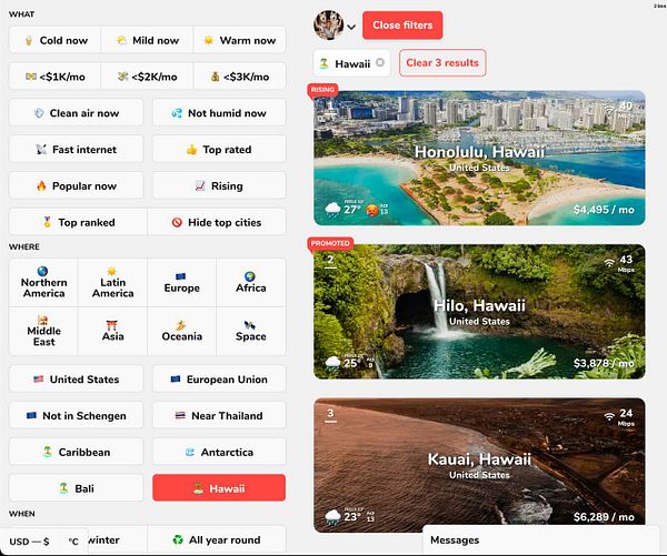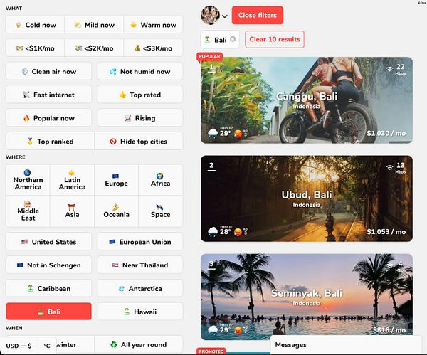 add Hawaii and Bali filter because they’re not countries but not cities either so filter on exact_match for ‘state’