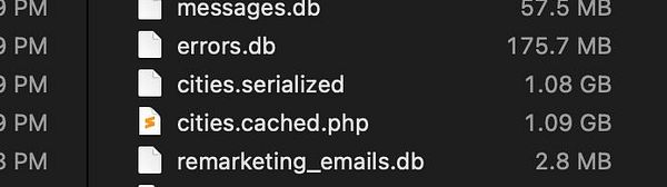accidentally make city cache file that’s included on every page balloon from 50mb to 1GB
