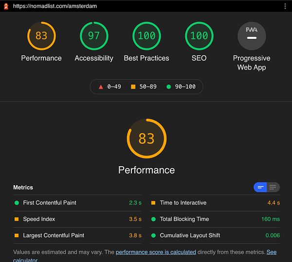 get city page to >80 on web.dev but still need faster server response time