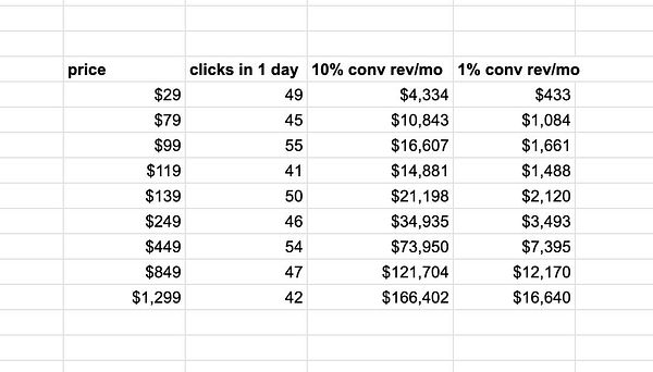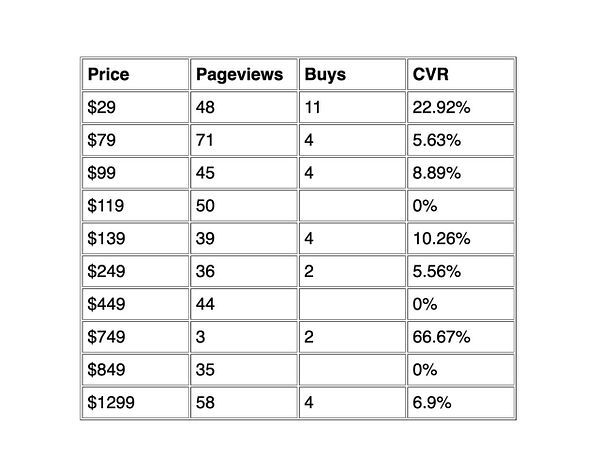 test different prices for course