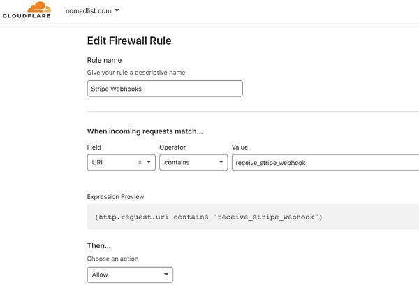 add Stripe webhook bypass in Cloudflare Firewall rules to avoid webhooks being blocked