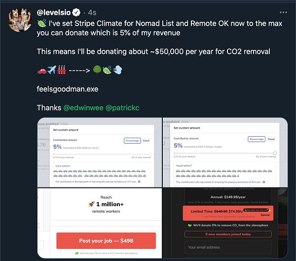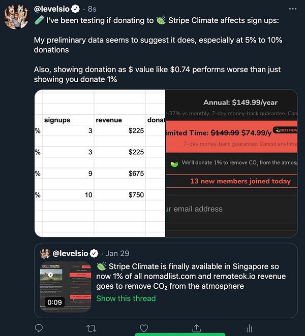 finish A/B test and go for 5% donation Co2 w/ Stripe Climate