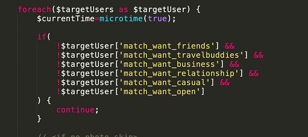 don’t process users in dating matrix if no [ What you’re looking for ] selected