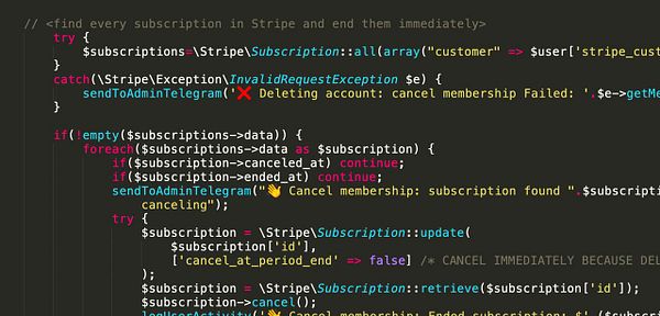 members who cancelled since we upgrade to new Stripe API which doesn’t have subscriptions in $customer object