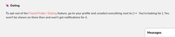 add text to /settings how to opt-out to /dating or /friend-finder