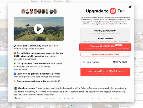 offer upgrade to full membership after 7 days to basic users