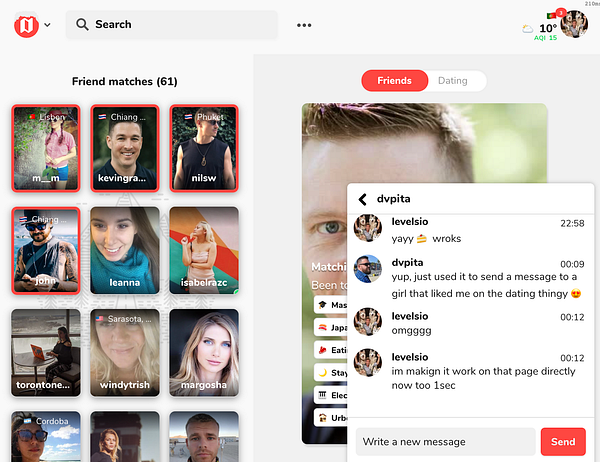 add in-site messaging on /dating and /friend-finder