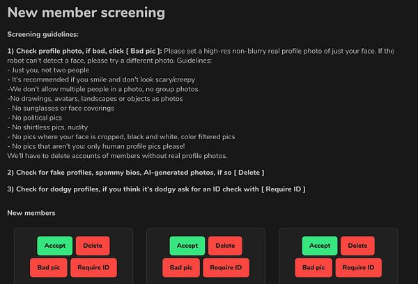 add delete and flag bad pic functionality to new members screening