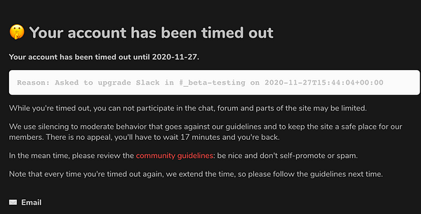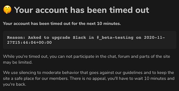 add “❌ Absolutely no politics or identity politics allowed here (go to Twitter instead!)” to welcome message