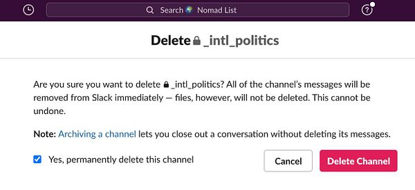 delete politics channel from