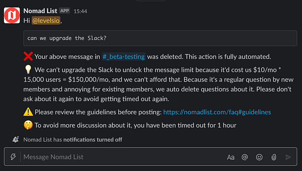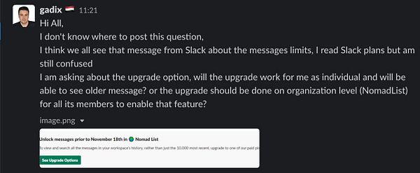 Slack to pro every week because we can’t afford to pay $10/mo*15,000 users=$150,000/mo to Slack