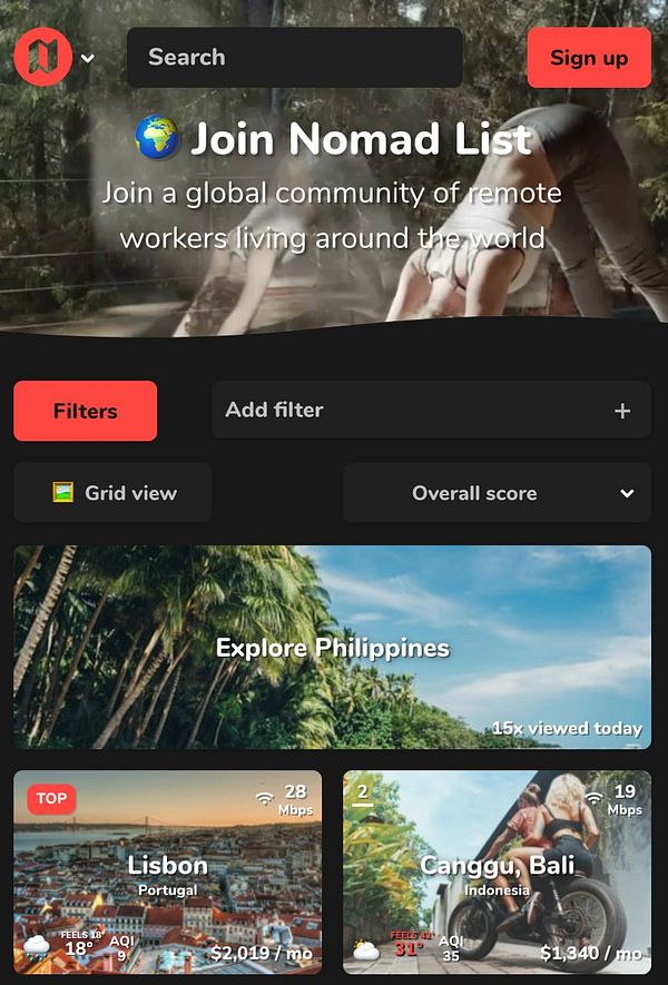 #nomads for subtext only “Join a global community of international travelers working remotely around the world” vs “Join a global community of remote workers living around the world” to push it more towards remote working cause of post-corona 2021 mainstream remote workers relocating wave