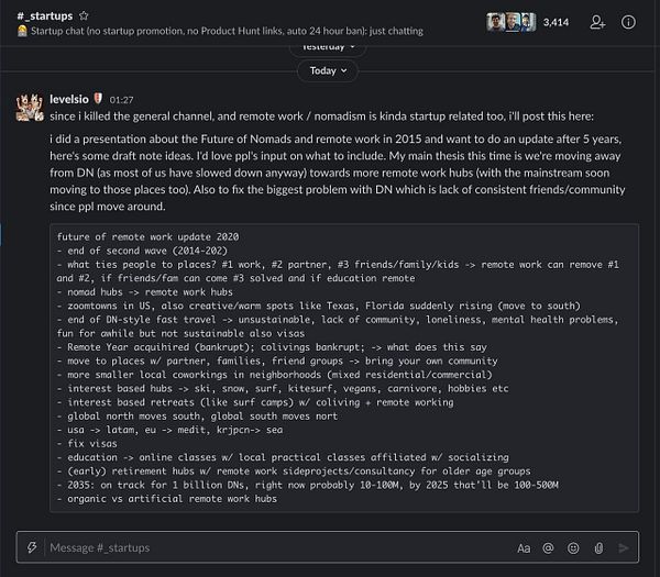 Slack about ideas for Future of Nomads 2020 presentation