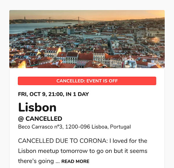 cancel Lisbon meetup due to COVID19