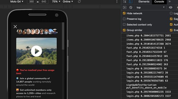 finish A/B/C/D test with “Become a nomad” winning as header slogan performing 2 to 5x better than other slogans