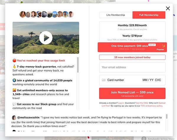 a/b/c/d test "7-days money back guarantee" position top, top third, middle, bottom of benefits on sign up modal