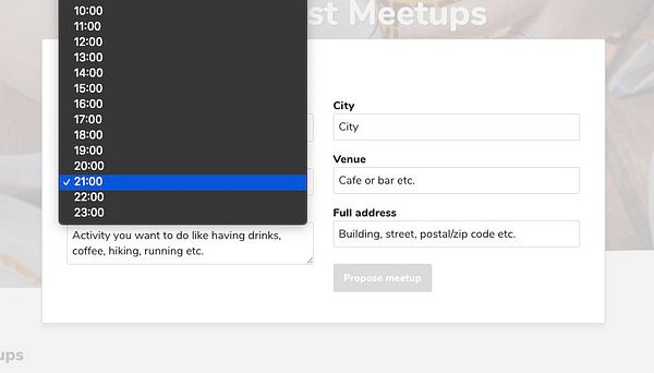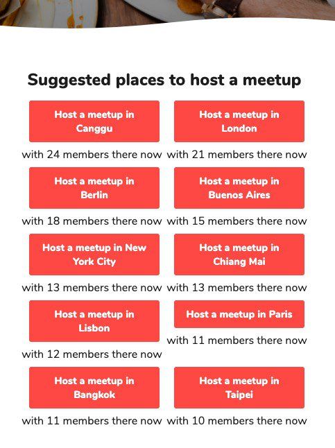 meetups page