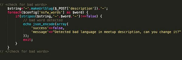 check meetup text for bad words