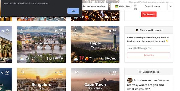 add “You’ve reached your free usage limit” if free user has visited site >10 times, has clicked tab in city >3 times (reset if new city is opened) #nomads