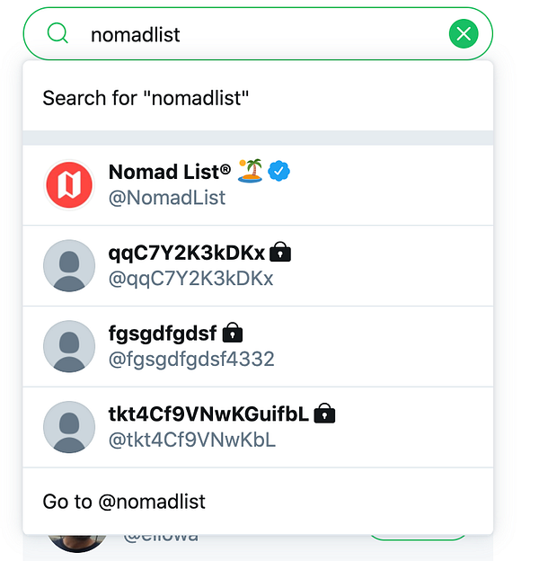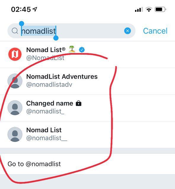 Twitter accounts (I had before buying main handle @nomadlist etc)