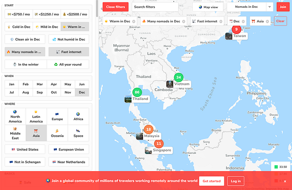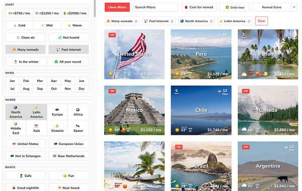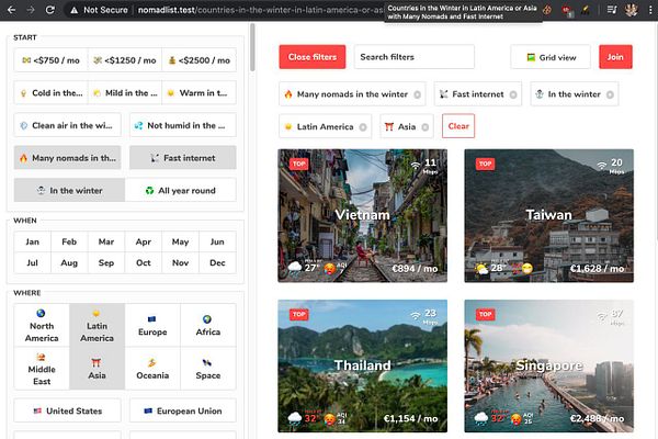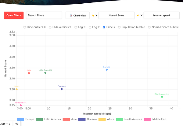 make regions/continents also filterable by taking the average data from countries in the region which takes it from average data from the cities in the country #nomads