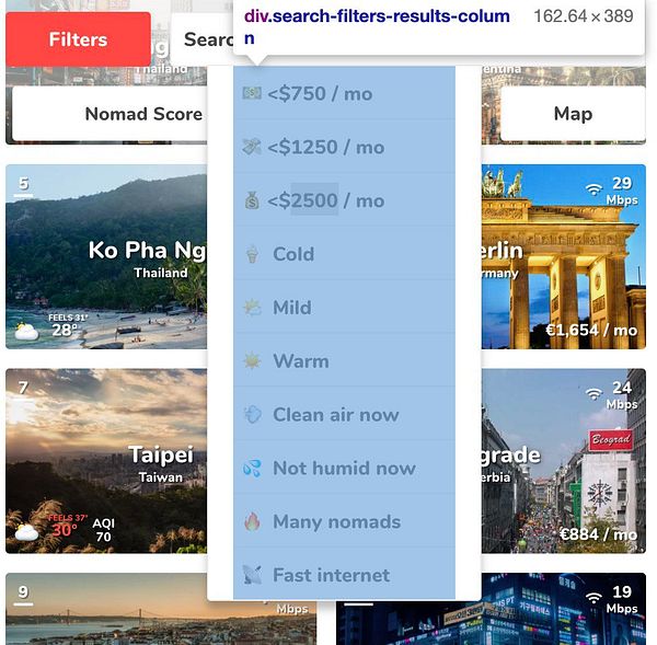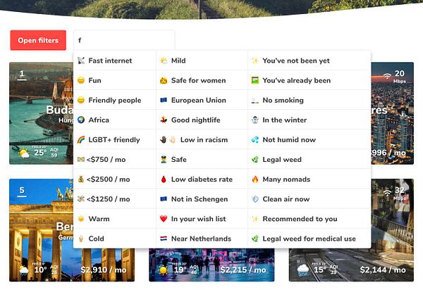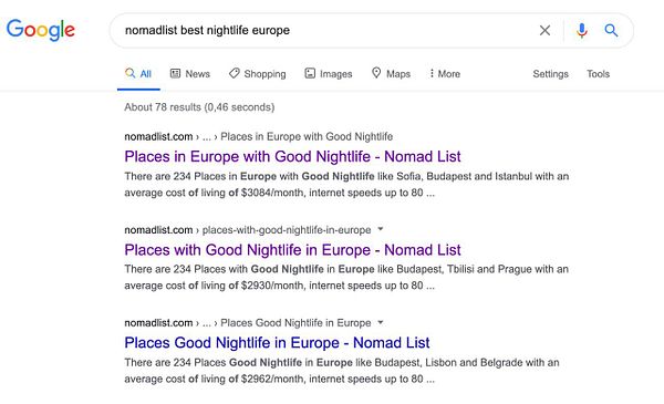 #nomads (e.g. /places-with-good-nightlife-in-europe -> /places-in-europe-with-good-nightlife etc.)