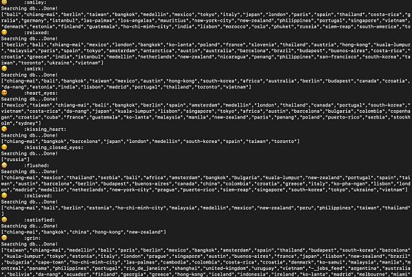 make bot that searches chat for emojis to match them with cities to improve the Emojipedia #nomads emoji search for cities (thx @marckohlbrugge for the idea)
