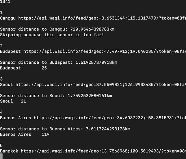 measure distance to air quality sensor and skip data if it's too far away (because Canggu was showing bad air due to the Indonesia forest fires but some of the sensors used for that data were far away) #nomads