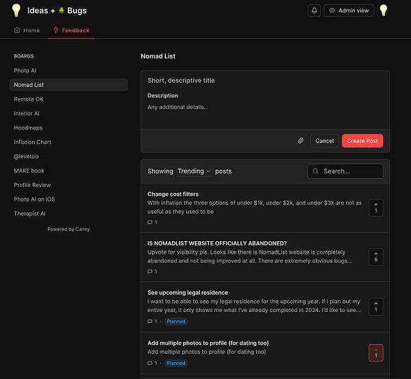 switch from Canny to Featurebase because Canny interface is kinda idiotic, the founder doesn't care about customers on X and it's expensive #nomads#remoteok#photoai#interiorai