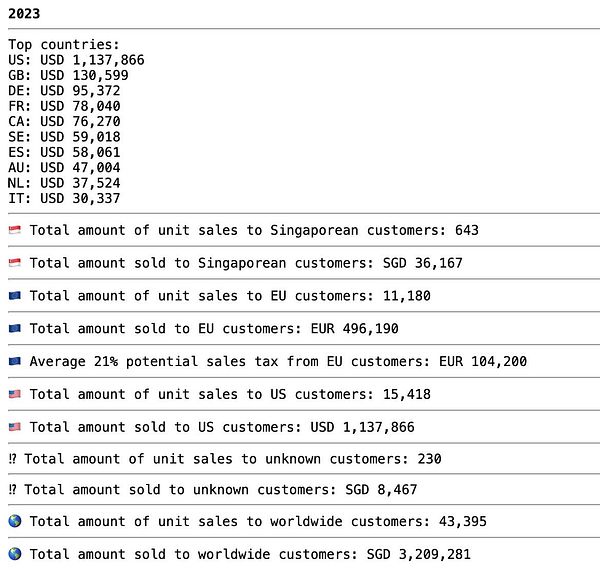 export all payments 2020, 2021, 2022, 2023, to prove I do not have over $1M in SGD payments from Singapore customers so I do not have to pay GST #nomads#remoteok#photoai#interiorai