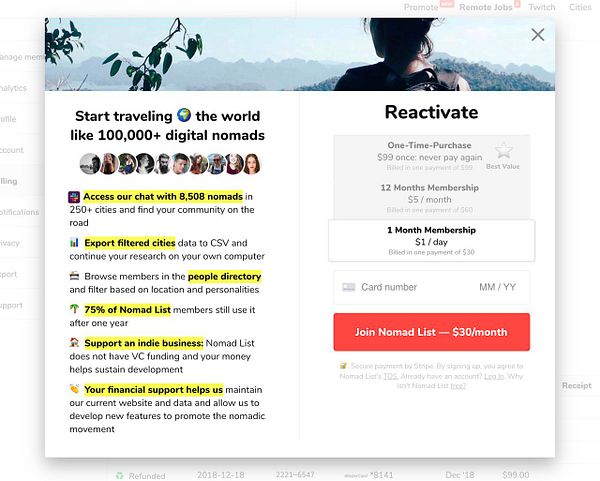 make top benefit dynamic based on what the non-signed up user clicks that opens the modal, so if they click a members only filter it shows “unlock all filters”, if they favorite a city it shows “add cities to your wishlist”, so the benefit is immedaitely clear of signing up