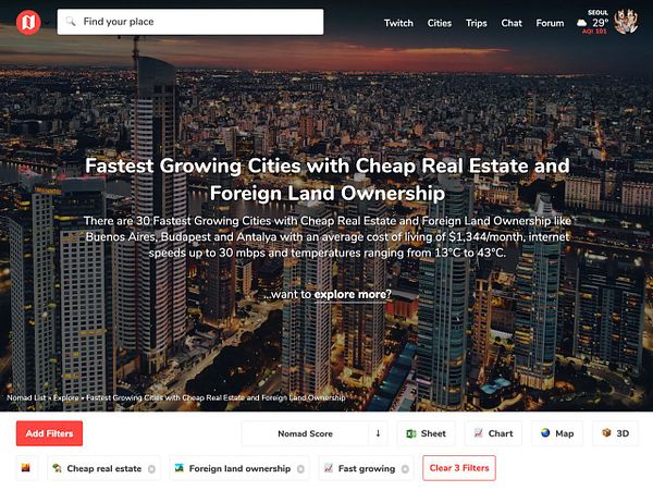 add Real Estate page for people to see where they can legally buy real estate, in fast growing cities with low prices