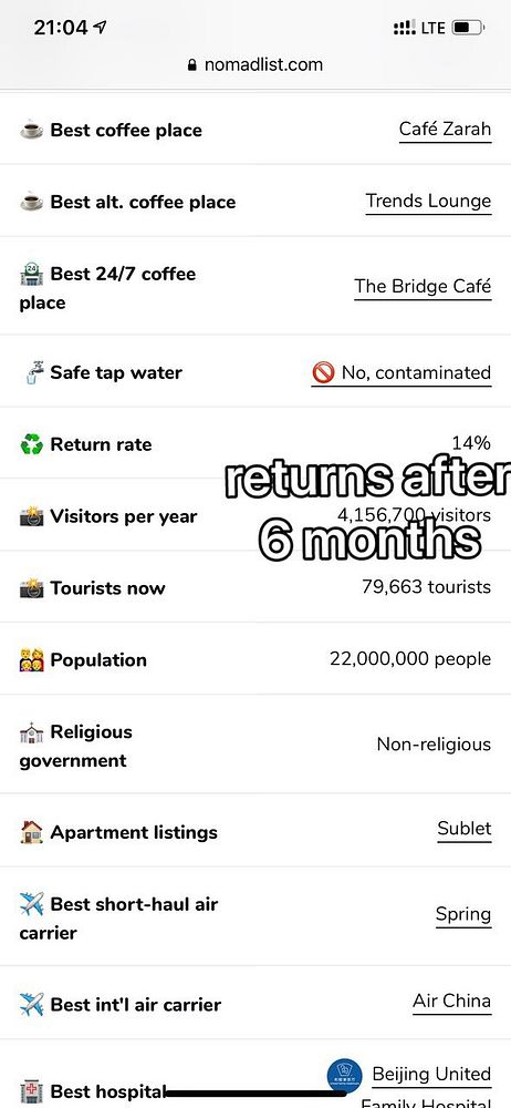 add "returns after 6 months" on city modal for return rate %