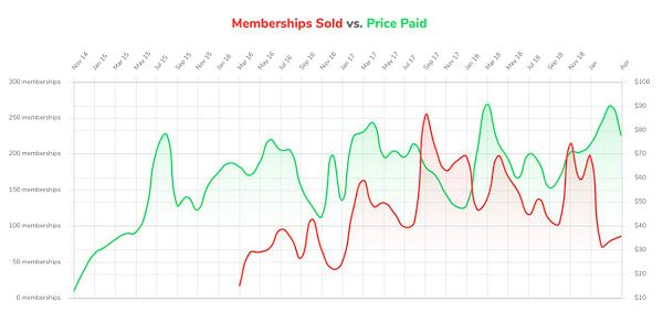 add Memberships Sold vs. Price Paid chart