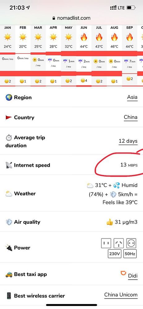 discount Chinese internet speeds to 1Mbps, because when using Great Firewall of China you can’t get much faster