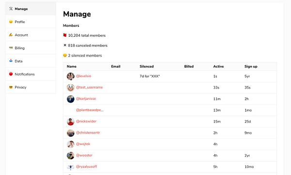build Manage Members dashboard in /settings for admin