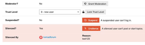 add "your account has been silenced" in settings page