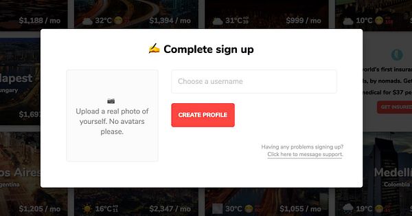 add “Having any problems signing up? Click here to message support.” to sign up modal